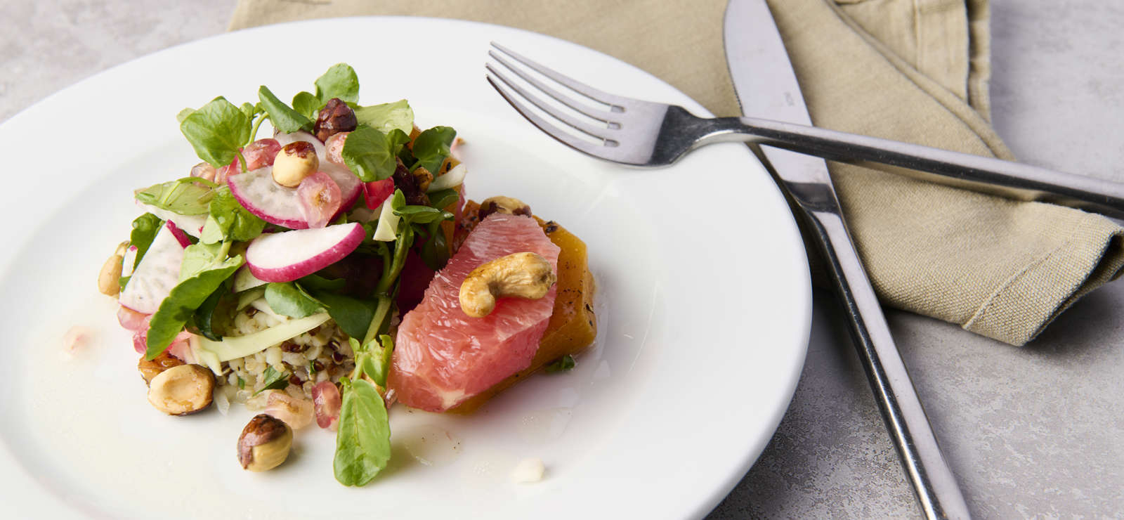 For dinner, we serve a bistro-style meal, with starter, main course and dessert. We strive to balance the meals across a range of foods and styles to keep your palate interested throughout the week.