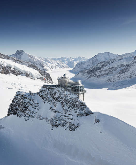 On the other side of the valley above Wengen you can visit the 'Top of Europe' at a height of 3,454 metres above sea level, where the viewing platform at the Sphinx Observatory gives you fantastic panoramic views of the spectacular Aletsch Glacier from the south side of the Jungfraujoch. You can also visit the special Lindt chocolate shop!